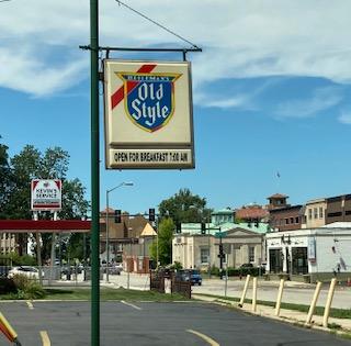 River towns are interesting, especially some of these Rust Belt towns. Such a mix of old and new, prosperous and distressed, scenic and degraded. In Maine we’re used to the sister cities on the rivers, one city where the mill workers lived and the “nicer” city on the other side of the river where the mill owners lived. These towns in the Fox River Valley span both sides of the river and the areas seem more mixed, not as clearly delineated, although there are apparently distinctions made by the residents. A friend with whom I had lunch in downtown Elgin told me there is a definite east-vs-west-side of the river social distinction at play in her town. Yet I found the iconic Old Style beer sign on both sides of the river!