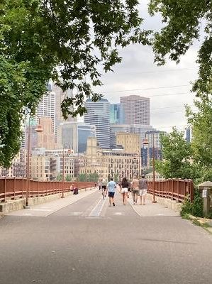 heading to the west side on the Stone Arch bridge