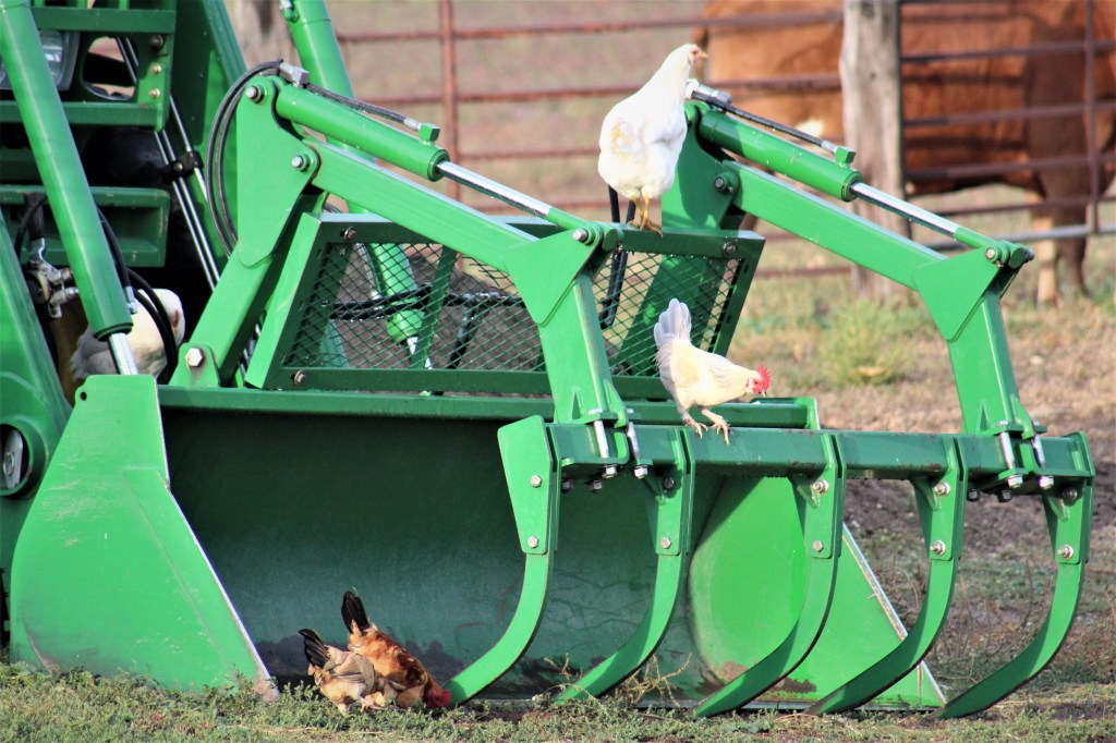 If you ever want to be the center of attention, walk past a group of cows. Their heads follow you in unison as you stroll by. It’s not fear, not looking for food, just pure curiosity. The horses were only semi-interested in us, the chickens just want to play on the farm equipment, and guinea hens are in a world of their own.