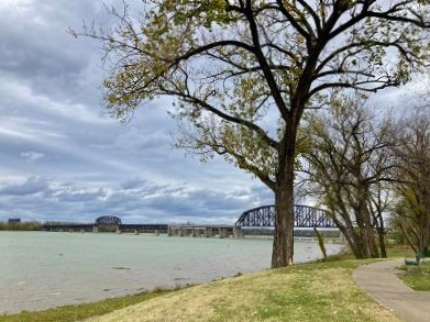 We knew we were going to be near a river walk but hadn’t realized until we crossed the bridge into town which river it was, the Missouri. We intentionally crossed the Missouri a few times during our month in Omaha: walking on the pedestrian bridge spanning the river, over to the Lewis & Clark trail on the Iowa side, over to a museum in Iowa City, and then when we left the city to head to our next stay.  And then at least four more times just driving from Omaha to Washington, MO. We felt like we really saw that river.