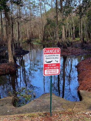 So, don’t feed the bears! Or the gators and snakes either, as the sign by our swamp warned.