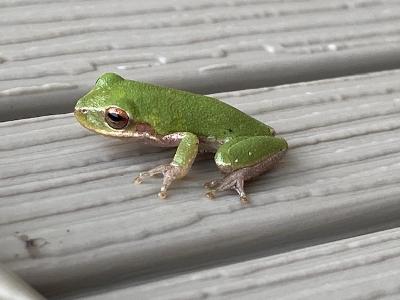 Tiny frogs were frequent visitors all over the patio.