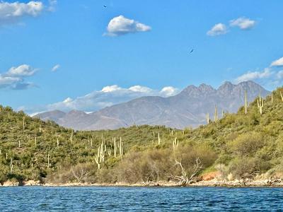 Saguaro Lake, a reservoir on the Salt River formed by the Stewart Mountain Dam.