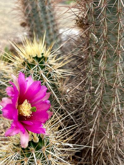 Blooming hedgehog cactus.