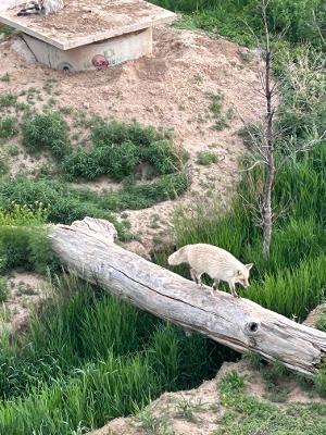 A beautiful blond fox, totally impervious to us gawking at her from the walkway above.