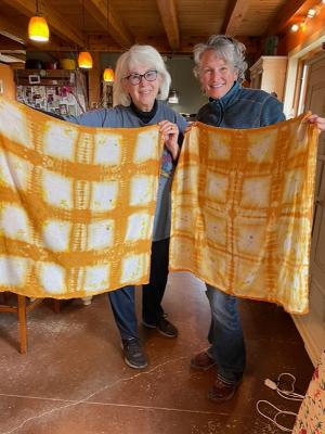 Kathy and I didn’t intend to make our dye projects look so identical. Guess we think alike! Such an interesting day learning about the plants and the process for making the dyes and then the various ways to use them.