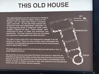 A sign at the pueblo-ruins on the Can Do trail. Without the sign we would have walked right by them, assuming the rocks were just random formations – if we had noticed then at all.